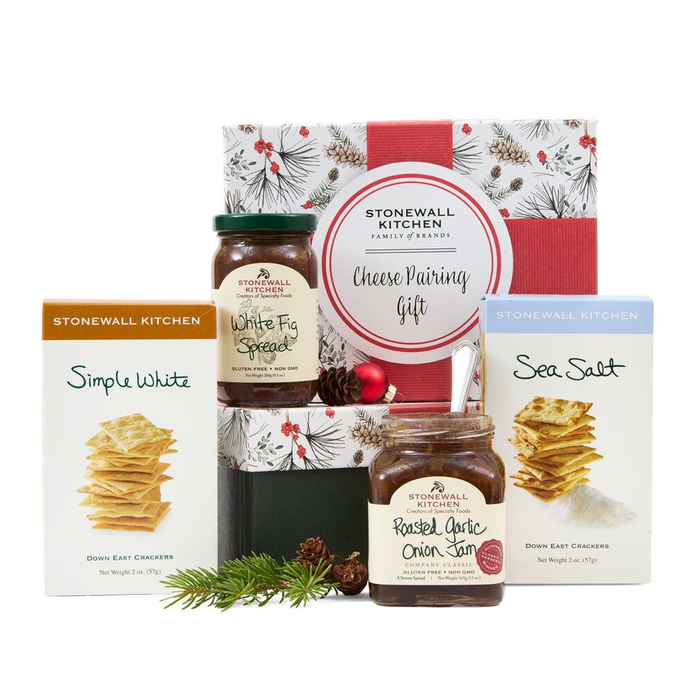 You bring the cheese, and we’ll supply the rest! Inside this cheese board gift set, you’ll find two types of crackers, a sweet fig spread, and a savory onion jam that pair well with everything from aged Gouda to creamy Brie. Elegantly packaged in a white-and-green box featuring a festive winter design, this ready-to-give charcuterie board gift is perfect for the cheese lover in your life.